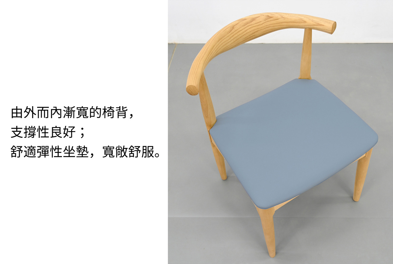 由外而內漸寬的椅背,支撐性良好;舒適彈性的坐墊,寬敞舒服;弧形半扶手,安全溫暖。